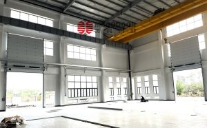 美高背带式快速堆积门专为超大型门洞设计,采用创新的背带式提升技术,实现安全高效的开启方式。产品结合抗风肋条与严密密封双重加固系统,具备卓越的结构稳定性,可瞬时抵御11级强风,确保在各种恶劣天气条件下的安全运行。此款堆积门不仅解决了大型门洞的实用需求,同时以简约流畅的外观设计,为现代工业建筑增添专业气质。